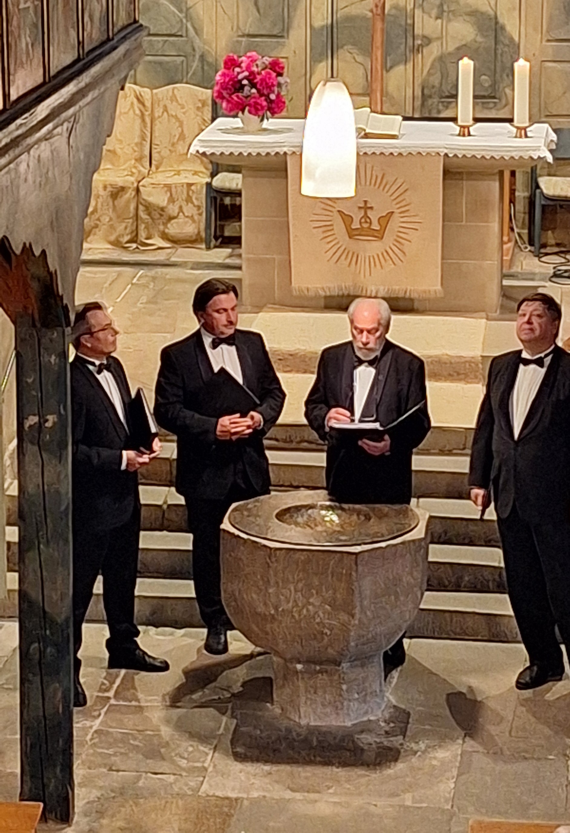 Die zahlreich erschienenen Zuhörerinnen und Zuhörer fanden sich plötzlich von der Amanduskirche, Beihingen, direkt in das Alexander-Newski-Kloster von St. Petersburg versetzt. Vier Absolventen des St. Petersburger Konservatoriums, die derzeit durch Europa touren, trugen Kompositionen der altehrwürdigen russisch-orthodoxen Vokaltradition aus mehreren Jahrhunderten vor. A-Cappella versteht sich - in der orthodoxen Liturgie sind keine Instrumente zugelassen.